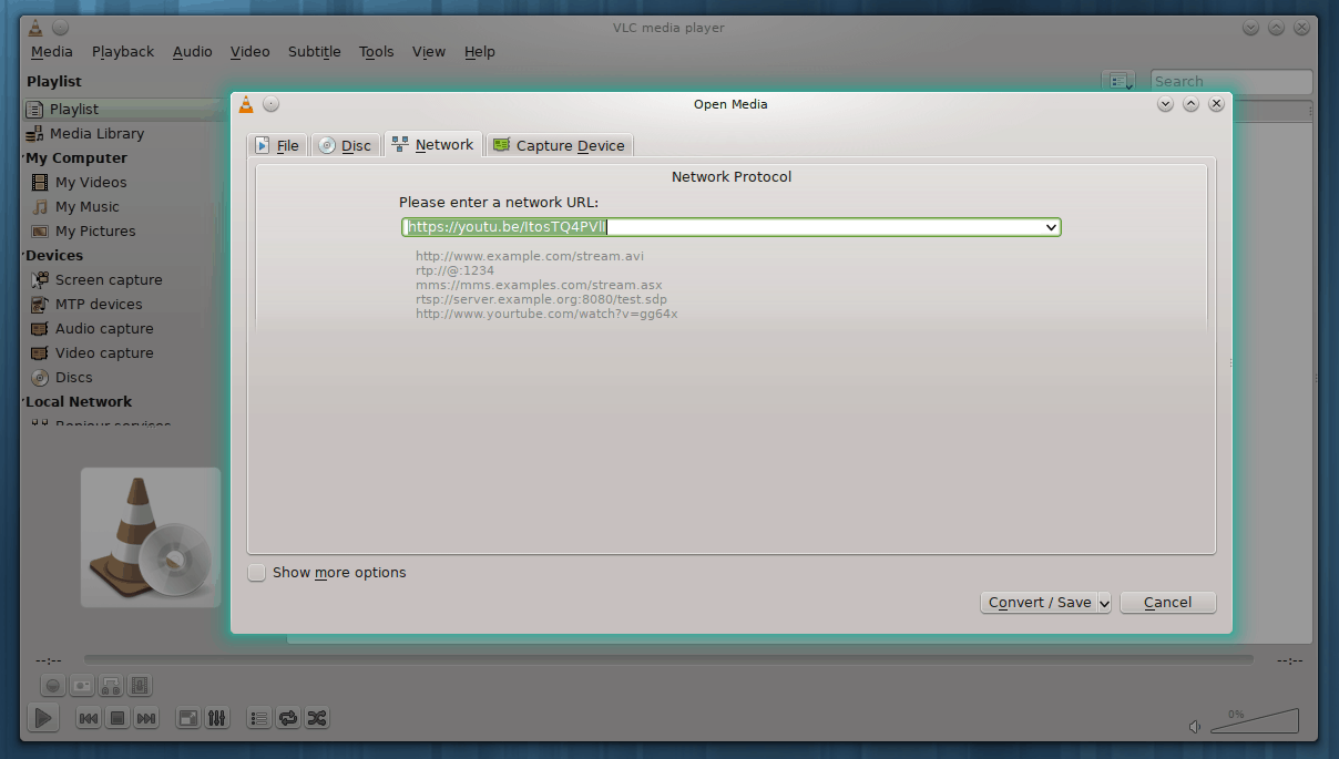 Want to to combine both features? No problem. Click Media and then choose Convert/Save again. In the dialog, click on the Network tab and copy the address of the YouTube video you want to download. In the next dialog choose your preferred encoding, the name of the destination file and click Start. If VLC complains about the file already existing, ignore it: click Overwrite and the download and conversion will begin. When VLC is done, you’ll have a nice video file waiting for you wherever you chose to save it to.